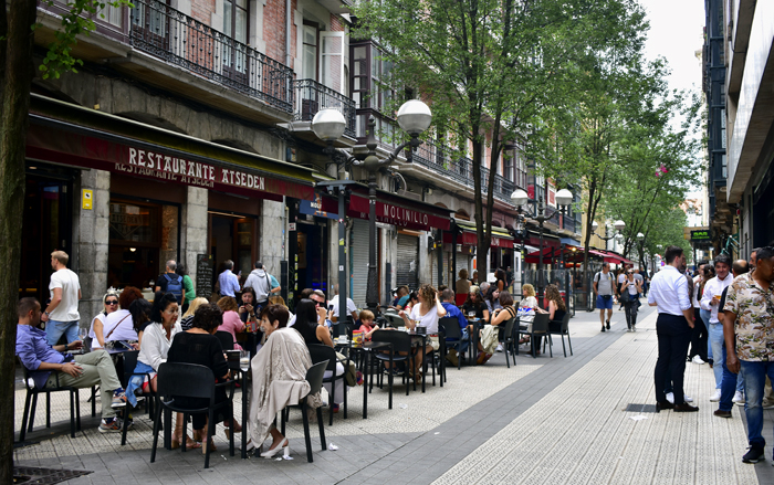 Her er du via broerne over Nervion-floden også i gåafstand til i hvert fald den østlige del af bydelen Abando, der er Bilbaos nyere centrum med bl.a. Guggenheim og den populære handelsgade Gran Via.