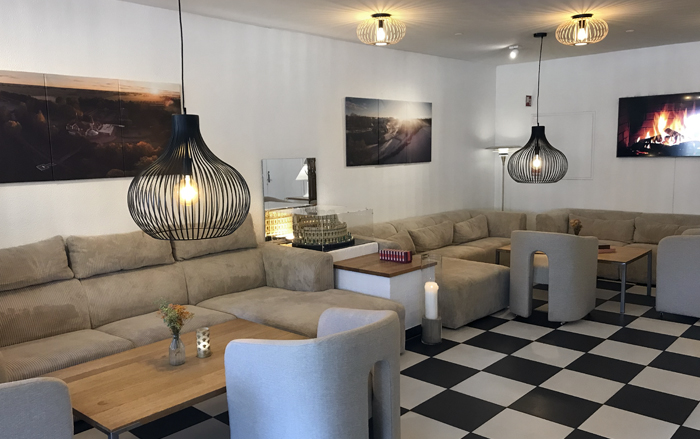 Vi fik en fin velkomst i receptionen på Sørup Herregaard. Selvom vi ankom på en hverdag, var der en lille kø og måtte vente 10 minutter på at få nøglerne (adgangskort) til vores værelse. Vi havde ikke travlt, men jeg kan ikke undgå at spekulere over, hvor lang ventetiden er i weekenden. Jeg håber, der er mere end én receptionist på vagt.