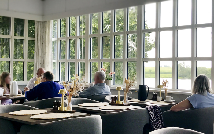 Restauranten ligger i hovedbygningen og i en tilbygning med store glaspartier. Her var ganske enkelt ulideligt varmt under vores besøg, og det virkede mærkeligt, at gæsterne skulle gøre opmærksom på problemet, før der blev gjort noget ved det.