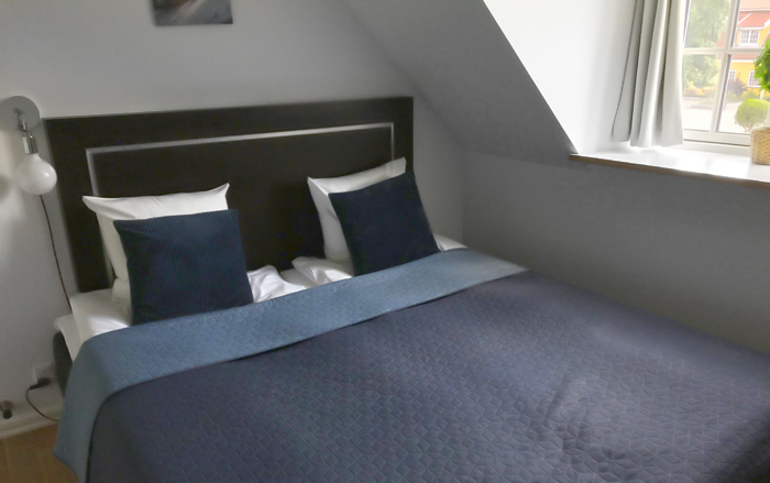 Værelserne ligger i længer ved hovedbygningen. Er du det mindste gangbesværet, så skal du sørge for at booke et værelse i stueetagen. Trapperne op til første sal er meget stejle.